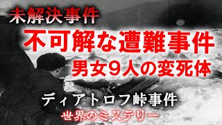 【ミステリー事件/未解決事件】ディアトロフ峠事件 女子大生は舌を抜かれ、放射能まみれの男女9人の変死体で見つかった!不可解な遭難事件の真相に迫る! 2024/8/28 ミステリー事件 スポンサーリンク 【ミステリー事件/未解決事件】ディアトロフ峠事件 女子大生は舌を抜かれ、放射能まみれの男女9人の変死体で見つかった!不可解な遭難事件の真相に迫る! 1959年2月、ロシアのウラル山脈で大学生9名が不可解な死を遂げました。氷点下30度の厳寒の山中で発見された彼らの遺体は …
