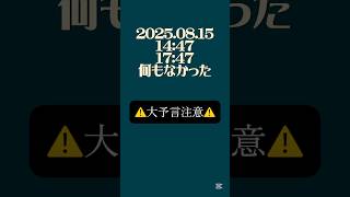 大予言注意警報発令2025年8月15日14:47【17:47】何もなかった都市伝説 #都市伝説 2025/8/16 予言 スポンサーリンク 大予言注意警報発令2025年8月15日14:47【17:47】何もなかった都市伝説 #都市伝説