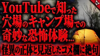 【怖い話】YouTubeで見たソロキャンプにオススメのキャンプ場での恐怖体験…。そして知った奇妙な事件にゾッとした…『キャンプに纏わる怖い話』全3話【ゆっくり怖い話作業用/睡眠用】 2025/8/16 恐怖体験 スポンサーリンク 【怖い話】YouTubeで見たソロキャンプにオススメのキャンプ場での恐怖体験…。そして知った奇妙な事件にゾッとした…『キャンプに纏わる怖い話』全3話【ゆっくり怖い話作業用/睡眠用】 【怖い話2ch】今回の怖い話は「キャンプに纏わる怖い話」ゆっくり朗読で紹介します。 それでもキャンプにハマった1話目の人、 …