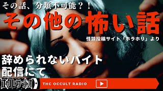 【その他の怖い話】その話、分類不可能?「辞められないバイト」「配信にて」 THCオカルトラジオ 【ホラホリ】 2024/2/20 オカルト スポンサーリンク 【その他の怖い話】その話、分類不可能?「辞められないバイト」「配信にて」 THCオカルトラジオ 【ホラホリ】 怪談の「辞められないバイト」「配信にて」を朗読・考察させていただきました。 はじまり 0:00 「辞められないバイト」2:16 …